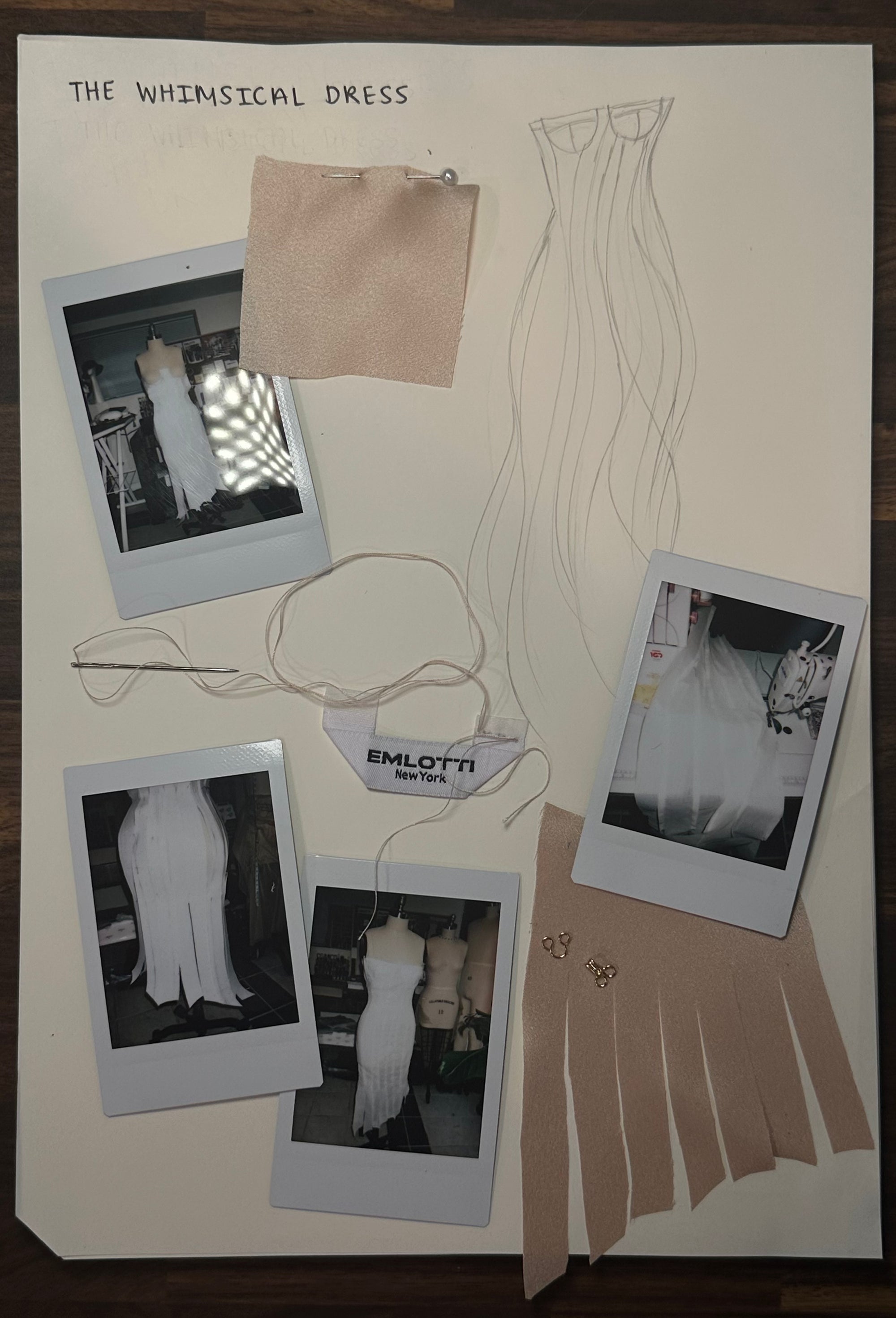 The Whimsical Dress is inspired by the raw emotion and fluidity of the Expressionist movement, with Edvard Munch’s The Scream serving as a central muse. I was especially drawn to the painting’s exaggerated lines, which I conveyed through the curved lines in my initial sketch.